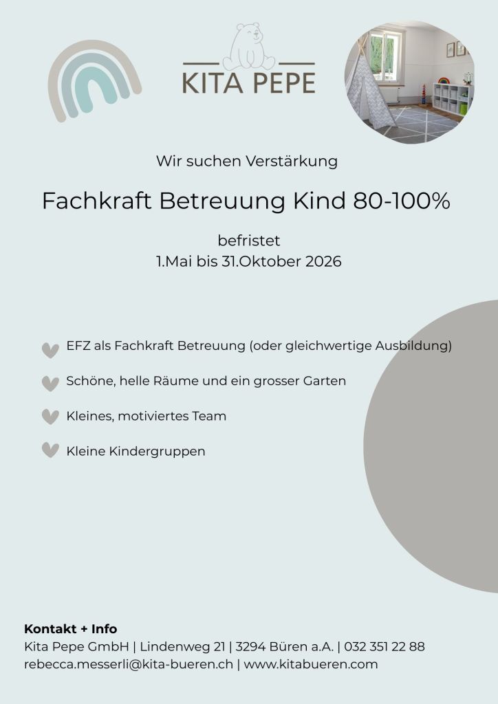 Wir haben an einzelnen Tagen noch freie Kita-Plätze. Gerne zeigen wir euch die Kita Pepe und beantworten eure Fragen. Meldet euch doch bei uns…